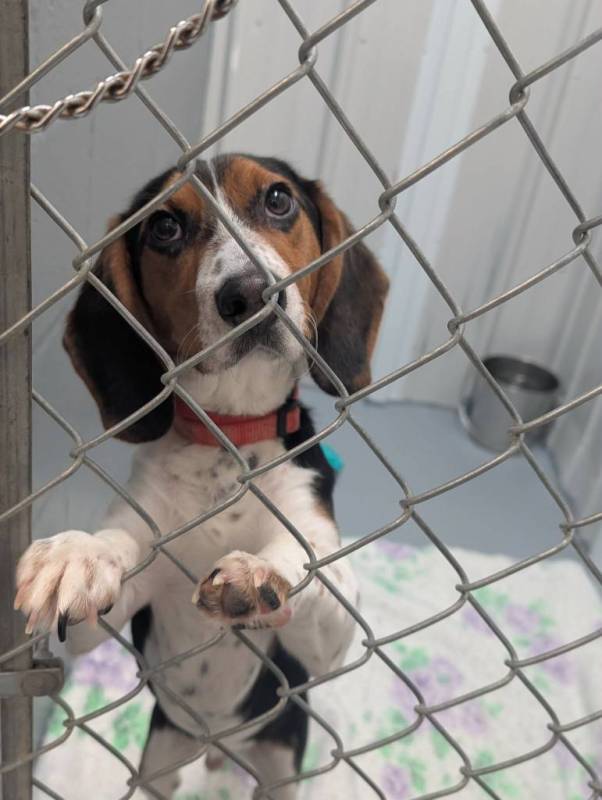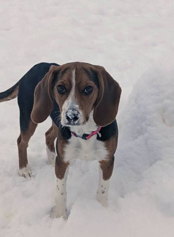 Je m’appelle Pavot et je suis arrivée ici avec ma soeur Sésame ( Hey oui, nous sommes des Beagles…nos noms sont concept hein!?). Nous sommes arrivée à 4h d’intervalle, la même journée, errant. Les deux personnes différentes qui nous ont trouvés semblaient dire que nous étions plusieurs chiens de type Beagle à se promener dans un quartier.