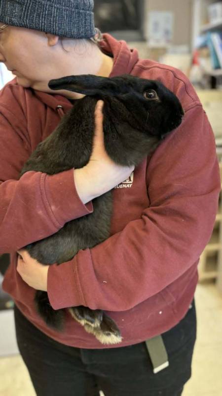 Max est un lapin timide. Quand même curieux, il aime avoir son espace et venir nous voir quand il se sent en sécurité. Il vivait dans une maison avec des chats et des enfants. Il était propre en litière :)