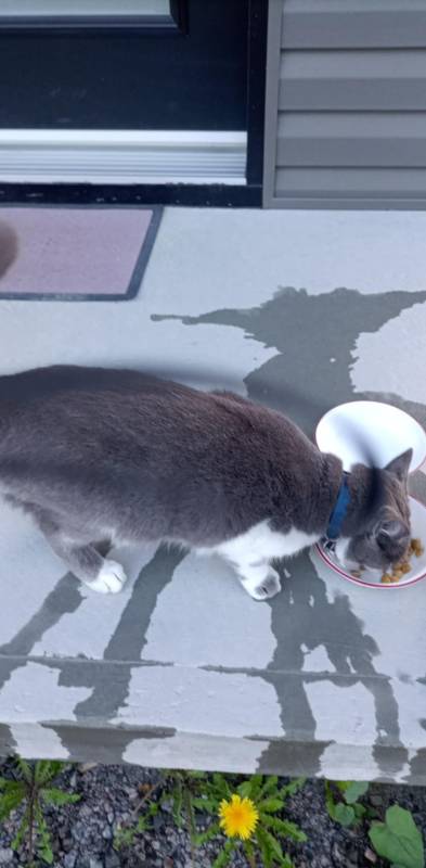 Je voulais vous informer au cas où il aurait été signalé comme perdu. Il est de couleur gris et blanc. Je connais pas sa race et je pense pas qu’il a une cicatrice.